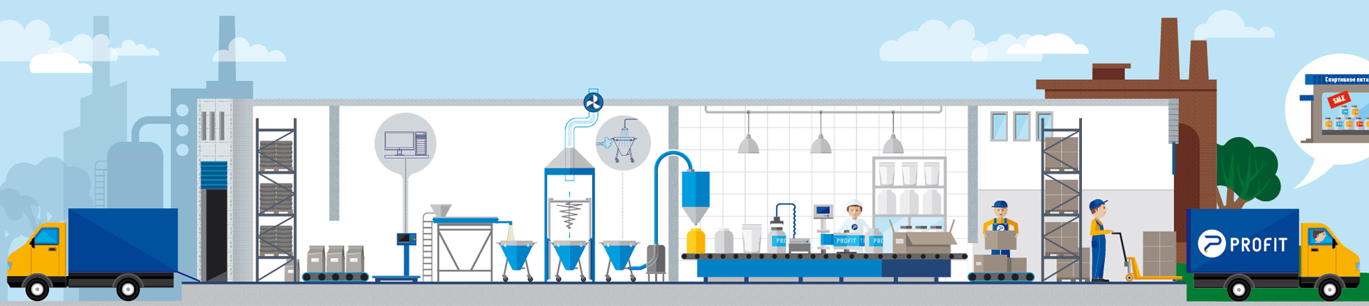 Далее продукция упаковывается и по транспортеру через шлюз попадает на склад готовой продукции, где ожидает поступления в магазины и региональные склады спортивного питания.